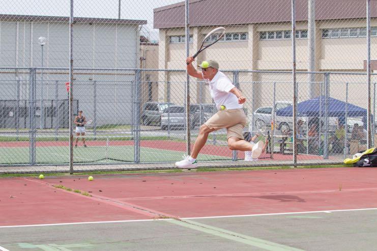 Dan captures a perfect moment as his dad returns the tennis ball.