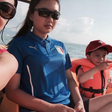 Daisy visits Lago di Lugano, Ticino on 24 July 2015 with Aunt Mimi, Nicolas, and Adrian.