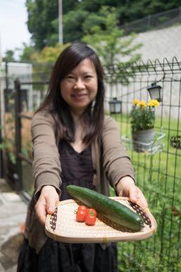 Minnie enjoys gardening in the back yard where she grows several tomato and cucumber plants. ere are also owers and herbs in her garden.