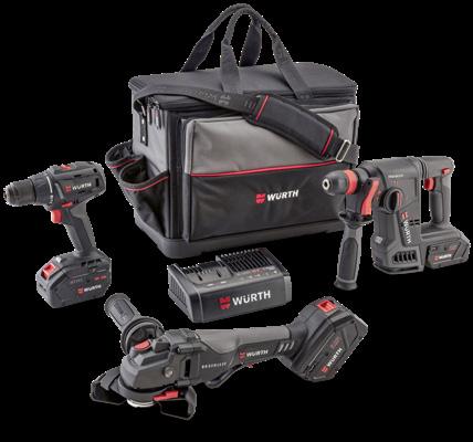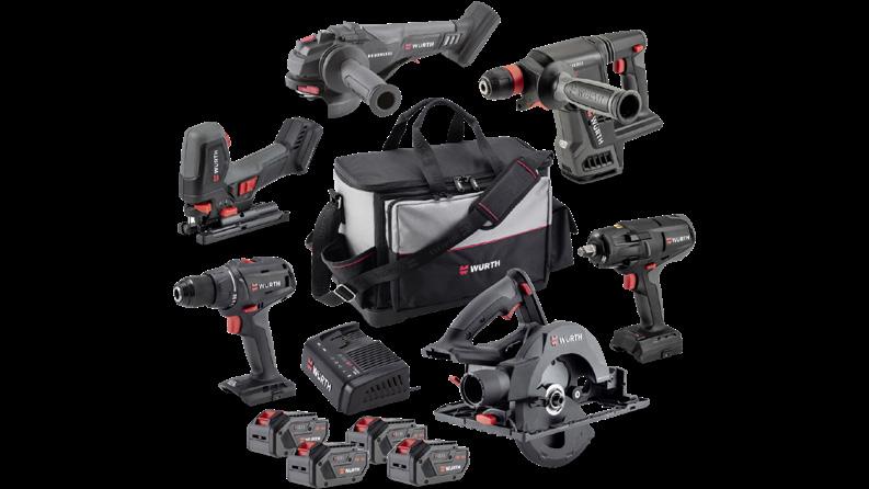 Bestehend aus 6 Maschinen inkl. 4 x 5 Ah Akku Li-Ion 18 V M-CUBE W-CONNECT, Ladegerät und Werkzeugtasche für Maschinen