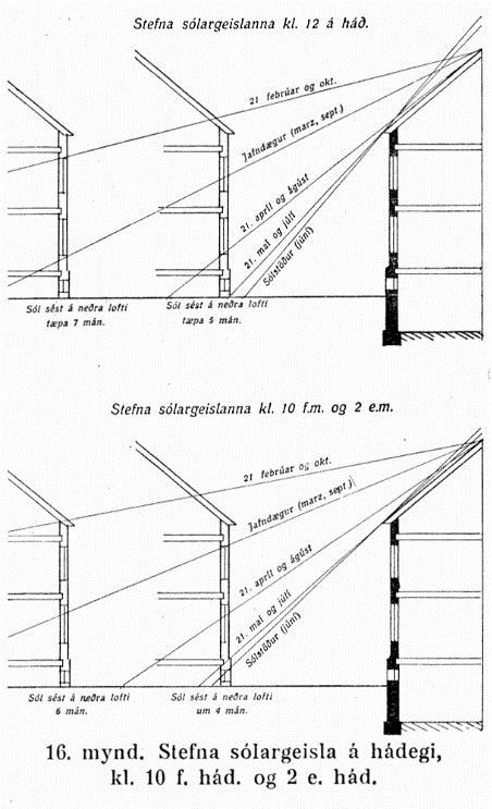 lágrar stöðu sólar og hæð mannvirkja en eftir því sem húsin hækka