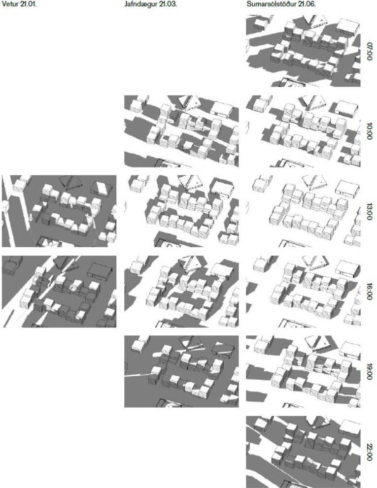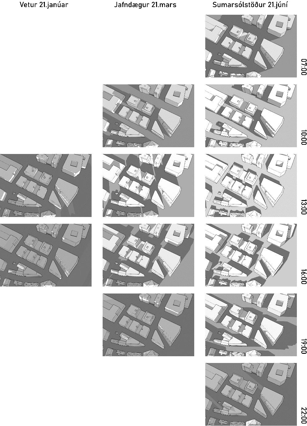 landslagsarkitektúr,skipulagi,arkitektúr,gróðrioghönnun.Hafistvar handa við að taka myndir af skuggavarpi á útvöldum stöðum í