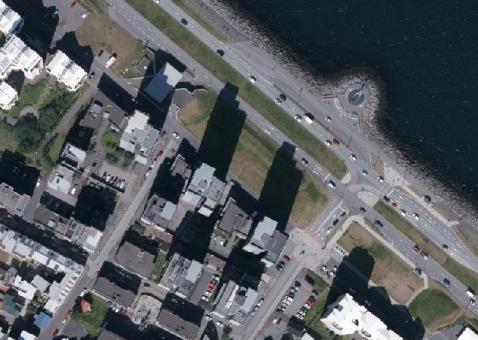 Mynd 44: Sunnusmári í Kópavogi á hádegi. Samanlagt skuggavarp