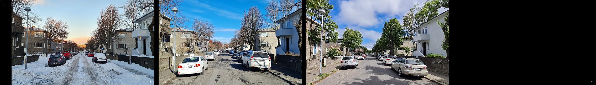 Þessar sömu staðsetningar voru síðan myndaðar á hádegi við