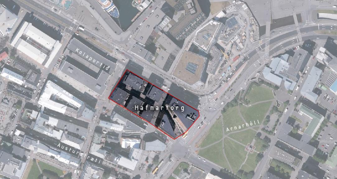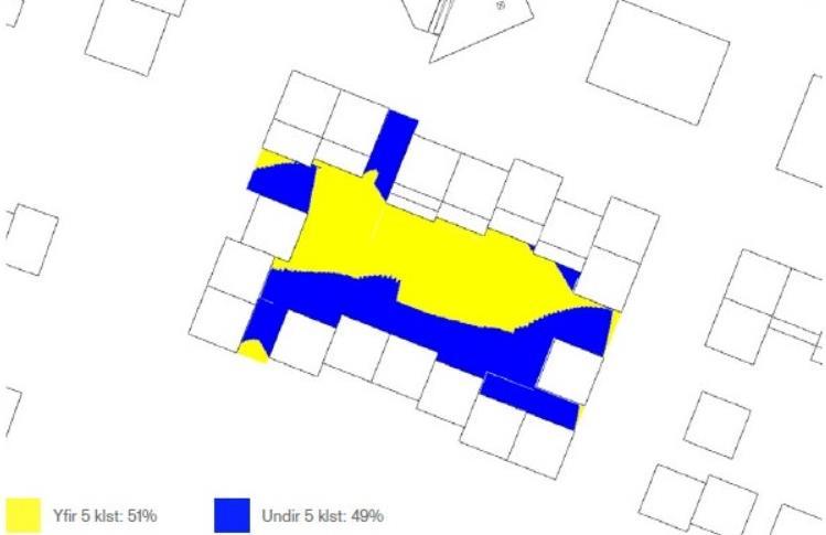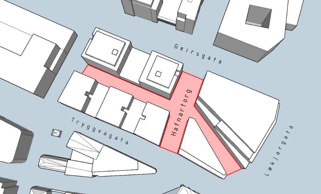 Mynd 50: Skuggavarp Hafnartorgs uppsett samkvæmt leiðbeiningum umútreikningaogframsetninguídeiliskipulagsgögnumfráRvk.borg.