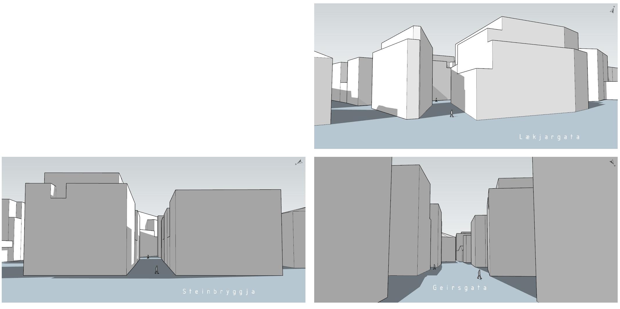 og Tryggvagötu, sjá mynd 3. Skuggi fyllti upp í plássið á milli bygginga og margar mannhæðir upp á fasöður þar sem opnun er til