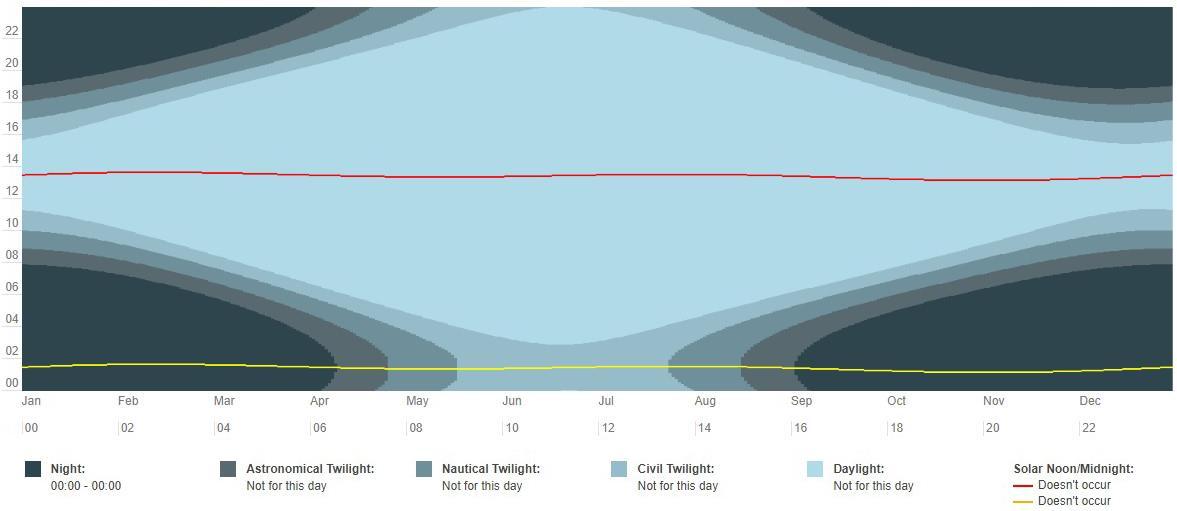 Mynd 22: Sólargraf sem sýnir lengd dags yfir árið í Reykjavík (Time and Date, e.d.).................................................................................. 22