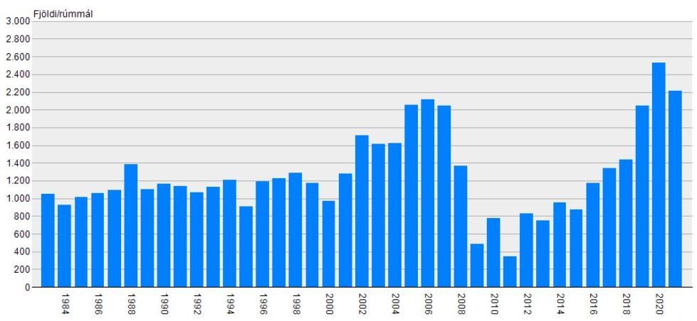 Mynd 25: Fullgerðar íbúðir á höfuðborgarsvæðinu á árunum 19832021 (Hagstofa Íslands, e.d.)........................................................... 24