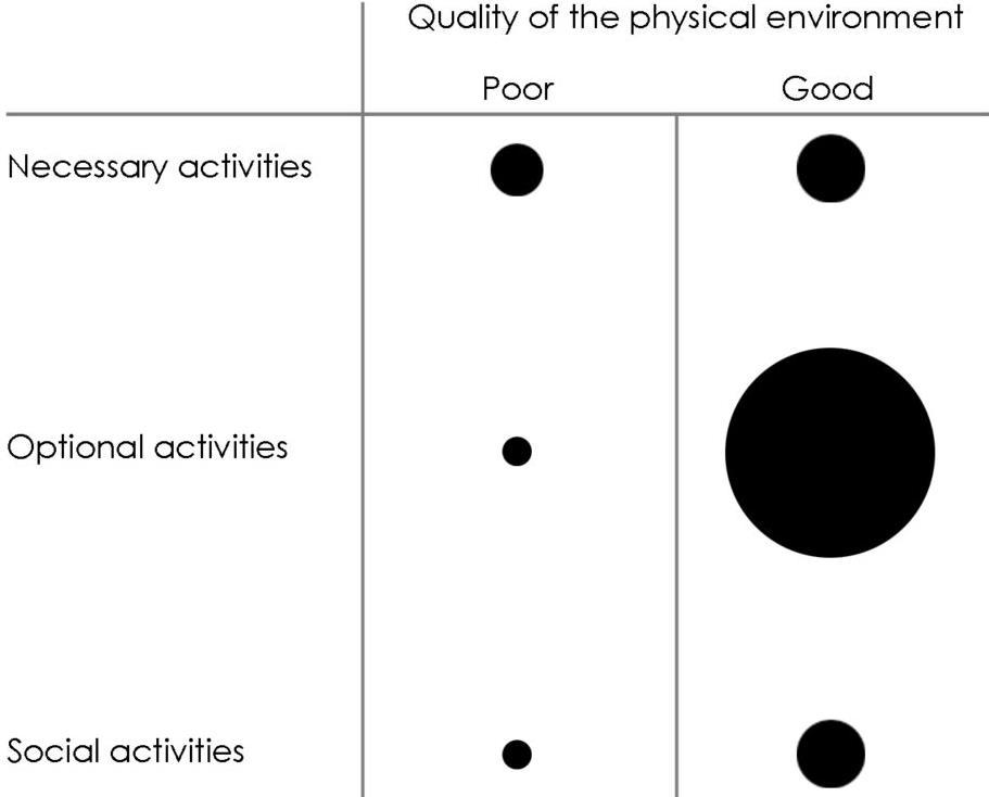 Mynd 15: Samhengið á milli athafna í útirými og gæða útirýmis.
