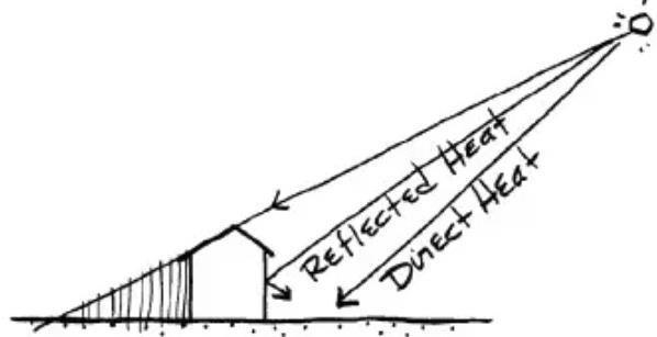 Mynd 2: Byggingar hafa áhrif á hitastig með staðsetningu sinni, formi og eðli (Starke og Simonds, 2013)