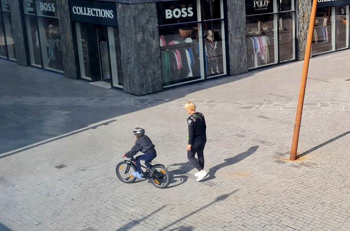 Mynd 59: Stúlka lærir að hjóla og fer nokkra hringi um svæðið, með