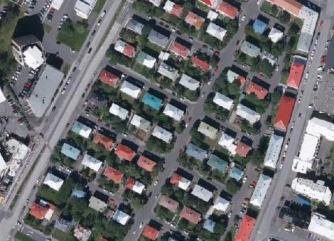 Mynd 47: Hofsvallagata við Hringbraut í Reykjavík á hádegi.