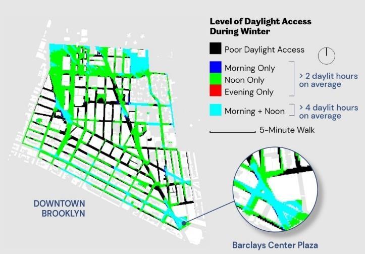 Mynd 31: Úr greiningu Fight for light á aðgengi að dagsljósi að veturlagi ímiðbæ Brooklyn (The Municipal Art Society of NewYork, 2023).................................................................................................33