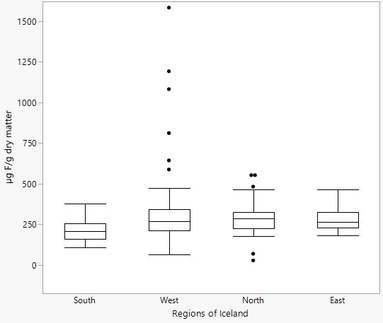 3) Er munur á meðalstyrk flúors í kjálkabeinum íslenskra hrossa eftir landsvæðum?