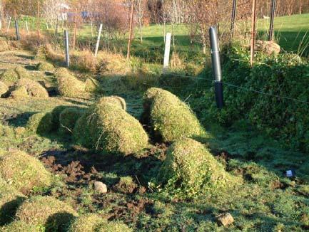 Mynd 15. Þúfur í ofbeittu hrossahólfi. Brattar þúfur sem hafa myndast á fáum árum þar sem áður var tún.