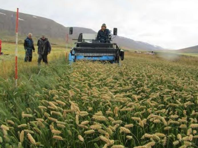 54%. Þess vegna kom á óvart óvenju góð rúmþyngd kornsins sem var að meðaltali 588 kg/m3. Hitasumman á vaxtartíma korns var 1113°D eða 73°D minni en árið á undan. Í Hörgársveit var korni sáð mjög seint eða í síðustu vikunni í maí og fyrstu dagana í júní. Kornið fór vel af stað enda júnímánuður óvenju hlýr. Korn skreið því nálægt eðlilegum tíma en seinni hluti sumarsins var hins vegar frekar svalur sem seinkaði þroska. Kornskurður hófst frekar seint í Hörgárdal eða um miðjan september og uppskeran var vel undir meðallagi eða um 3 tonn af hektara og sums staðar enn minni. Hins vegar voru korngæðin fín og rúmþyngd kornsins oft yfir 600 kg í m3