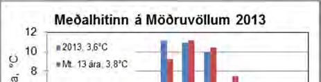 Myndin sýnir vel hve árið 2013 var frábrugðið undanförnum árum á Korpu. Vaxtartímabilið maí–ágúst er innan lóðréttu línanna.