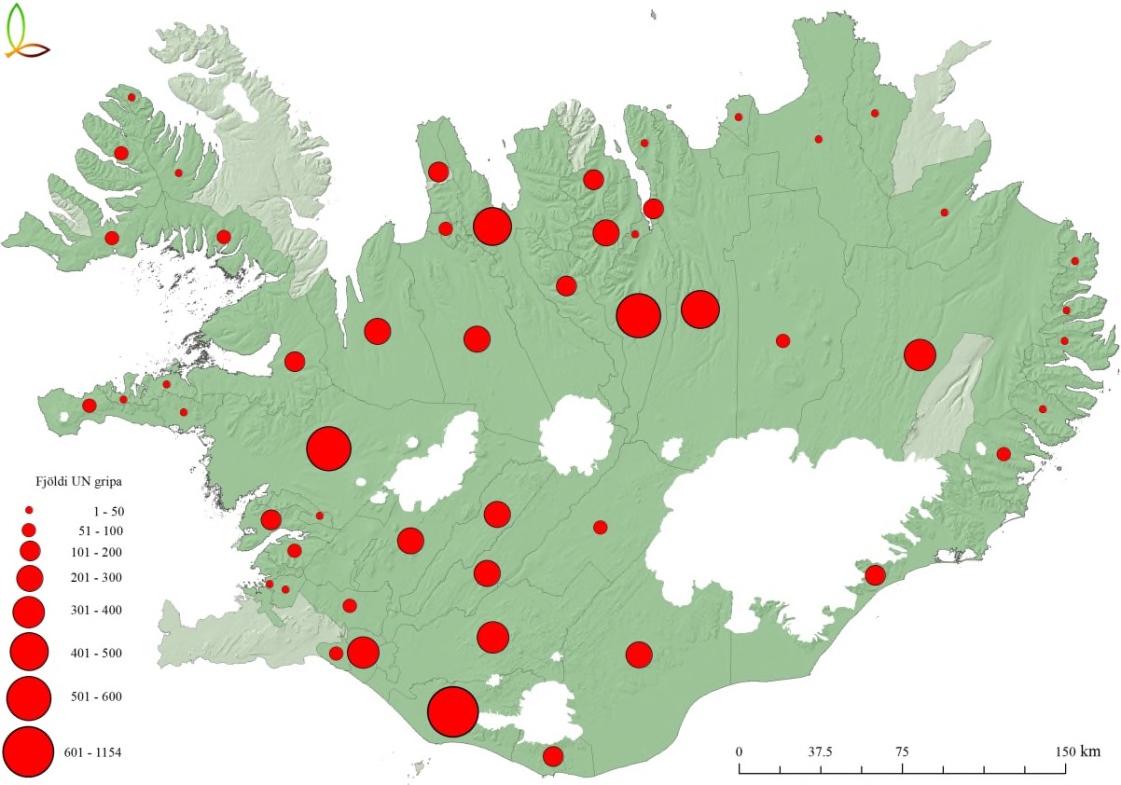 Mynd8. ÁætluðskiptingUNgripaeftirkynjum.