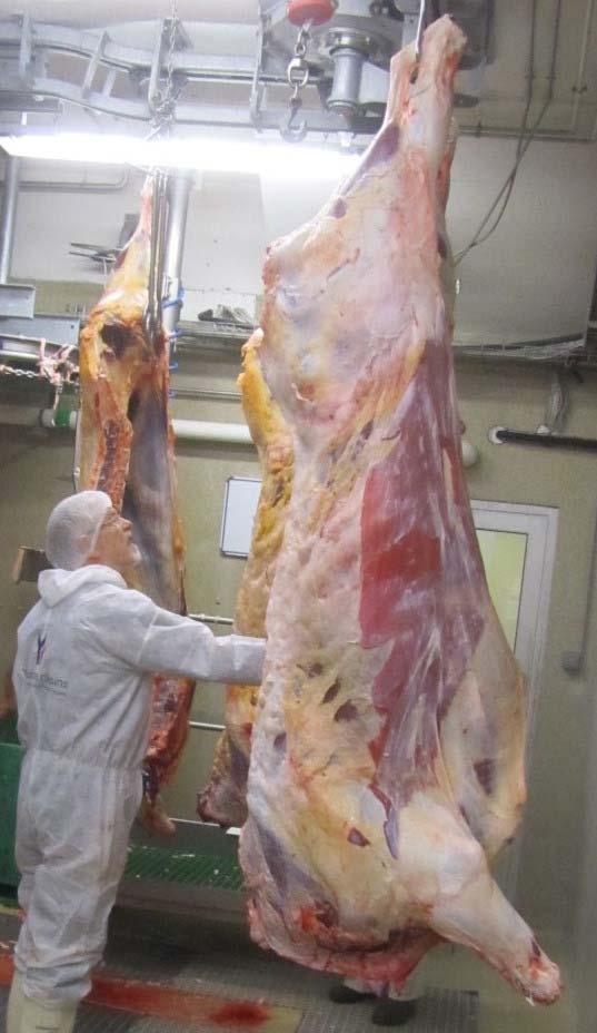 Samkvæmt EUROP kjötmati er ekki munur milli eldishópa (A og B) í holdum en 300 kg föll eru holdmeiri en 250 kg föll óháð eldishóp. Í fitumati eru kornnaut feitari en heynaut óháð fallþunga og 300 kg föll í báðum eldishópum eru feitari en 250 kg föll.