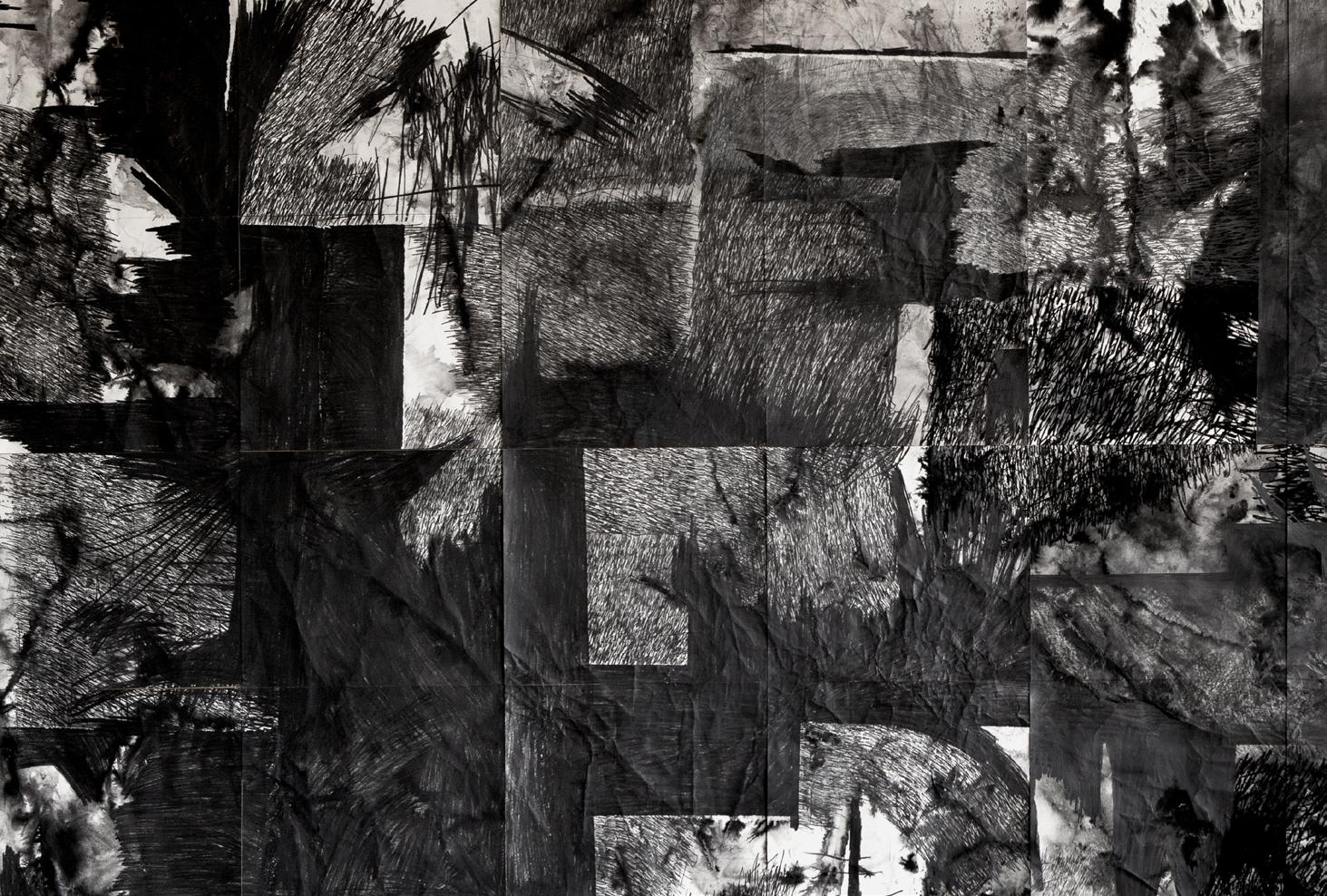 Abisso, 2021 Grafite e nanquim sobre papel com encáustica de cera s/ suporte de madeira. 360 x 165 cm