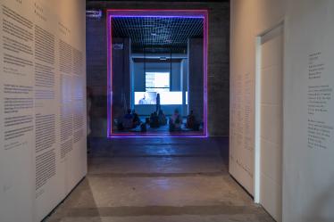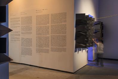 Comunicação visual para projeto expográfico do 23º andar. Obra: “Aquarius” Artista: Haroon Mirza (Inglaterra)