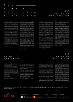 Capa do Catálogo da 3 a edição do projeto de Arte Imersiva do Farol Santander.TítulodaExposição: “Luz e Arte” Direção Artística: Facundo Guerra Artistas convidados: None Collective (Itália) Gisela Motta e Leandro Lima (Brasil)