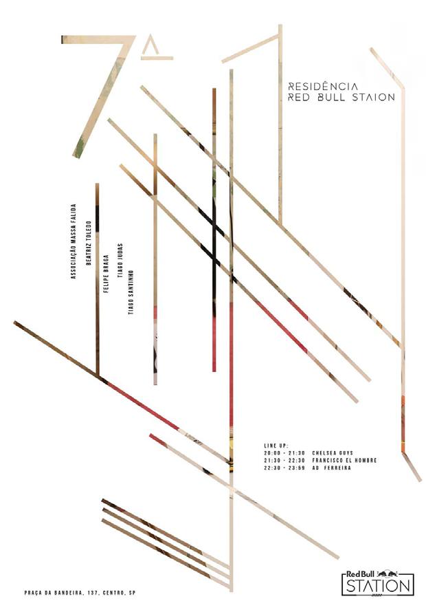 Red Bull Station, São Paulo SP Designer Gráfico e Produção 2013 / 2014 Criação de peças gráficas para divulgação de eventos da Residência Artística e produção (publicações da 7ª e 8ª edições ).