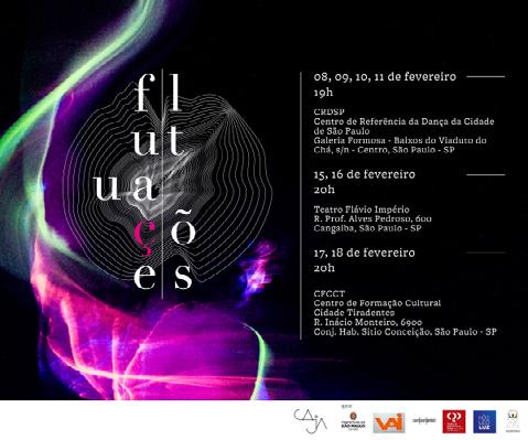 Projeto“FLUTUAÇÕES”ESPETÁCULOgráfico Desenvolvimento de Identidade Visual para o espetáculo e peças gráficas para divulgação. Grupo CAJA. São Paulo, 2017.