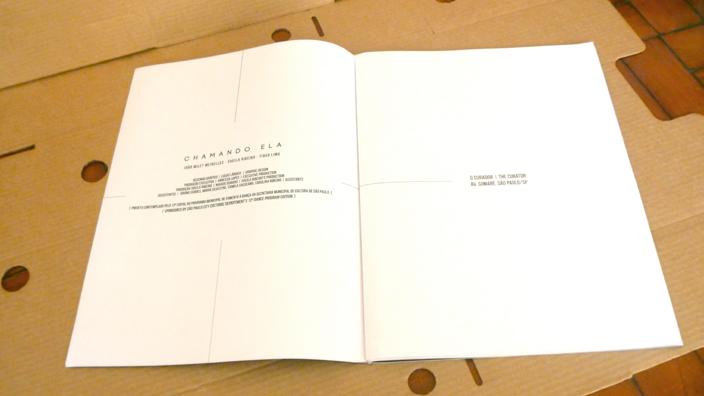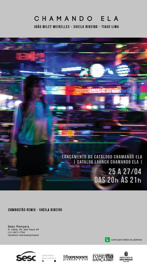 Catálogo “Chamando Ela”, 2015 Coordenação Editorial, Projeto Gráfico, Tratamento de Imagem e Produção Gráfica Projeto gráfico para o catálogo “Chamando Ela” de Sheila Ribeiro, Tiago Lima e João Milet Meireles. Lançamento | 23 de maio de 2015, São Paulo, SP. Oficina Oswald de Andreade.