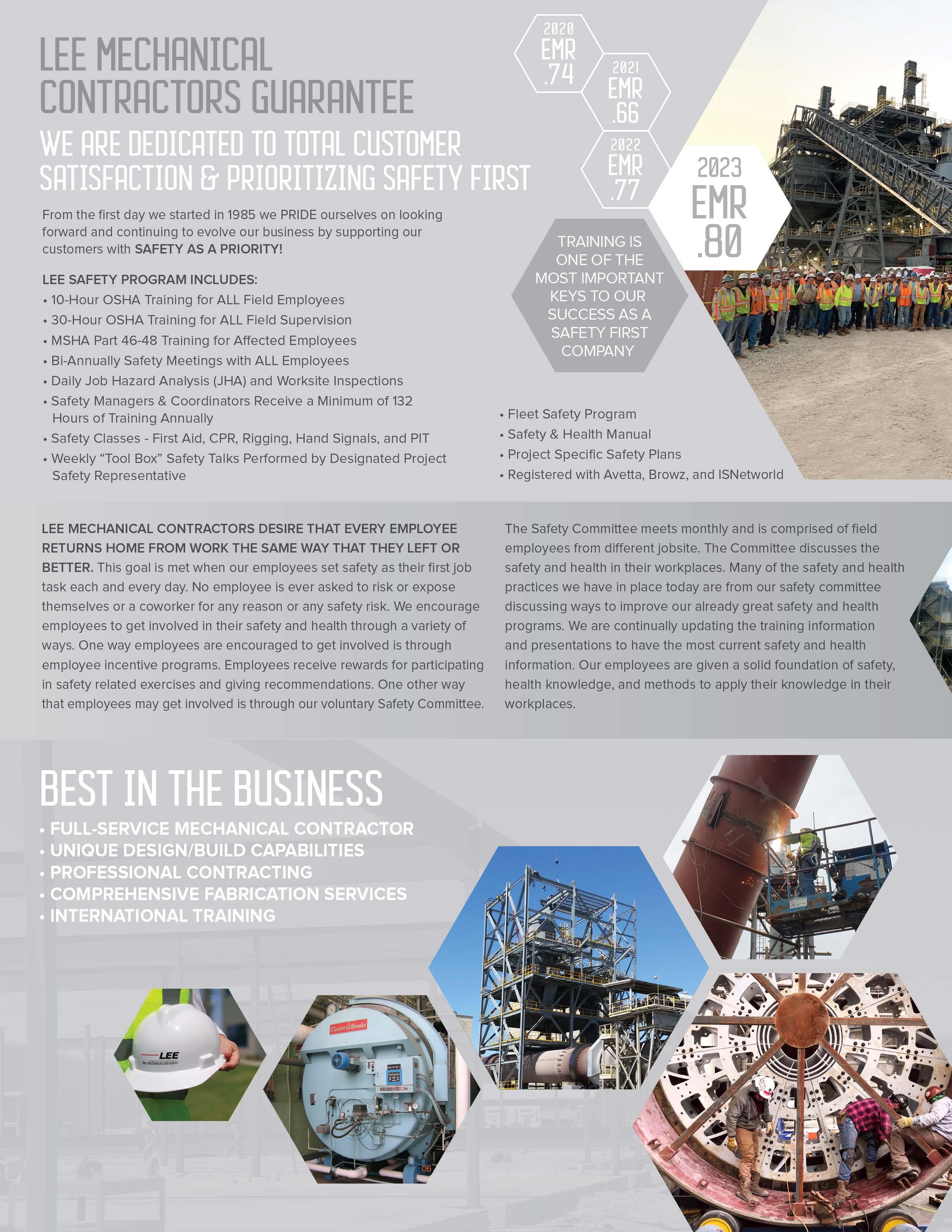 With over 35 years of experience in industrial and maintenance construction, Lee Mechanical Contractors is proud of the reputation it has earned with its customers.