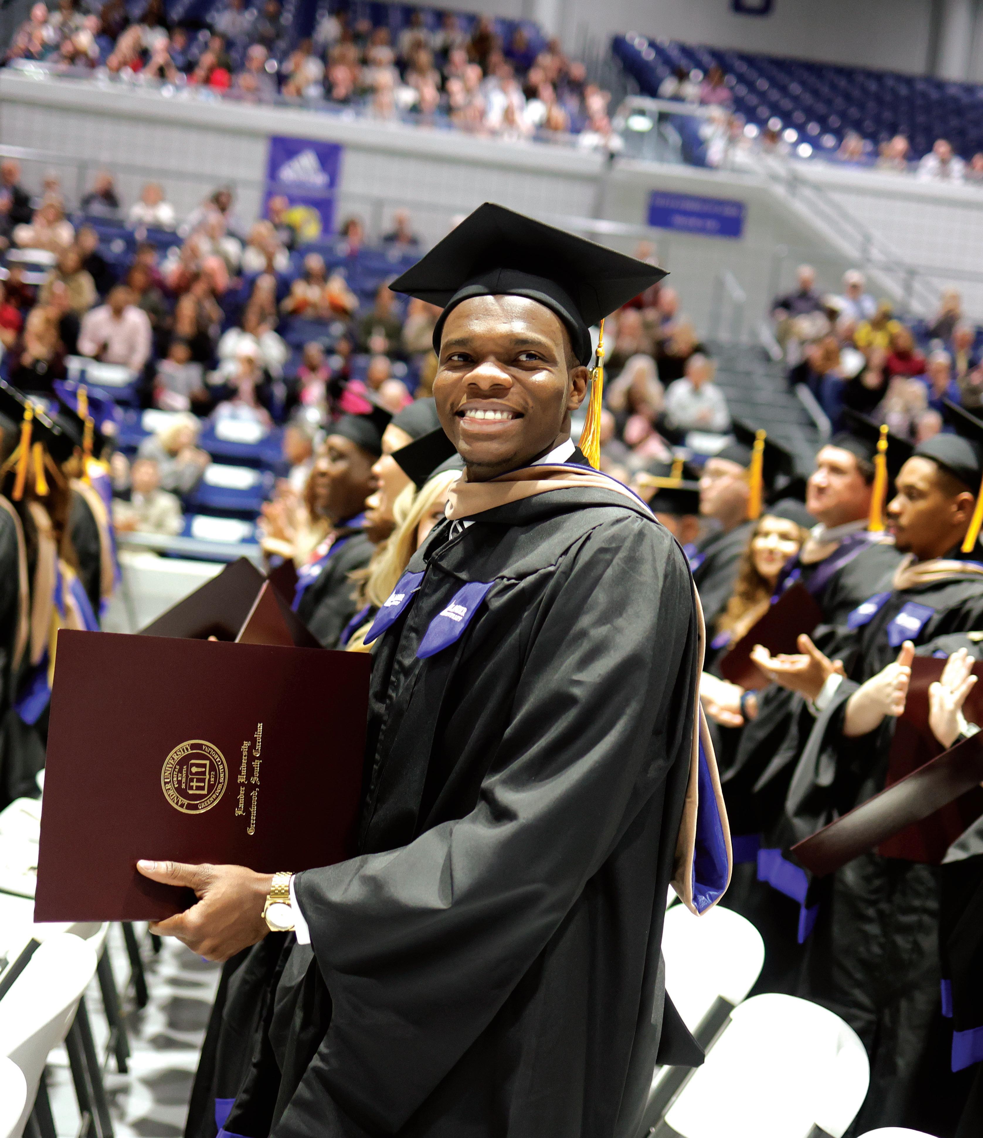 For graduate Ronald Magnus-George, pictured, earning his MBA from Lander was the next step in his dream of making meaningful contributions to healthcare on a global scale. A Ghana native, he arrived in Greenwood with a bachelor’s degree in biomedical engineering already in hand. Lander’s MBA program offered him the opportunity to focus his graduate studies in healthcare management and business analytics.