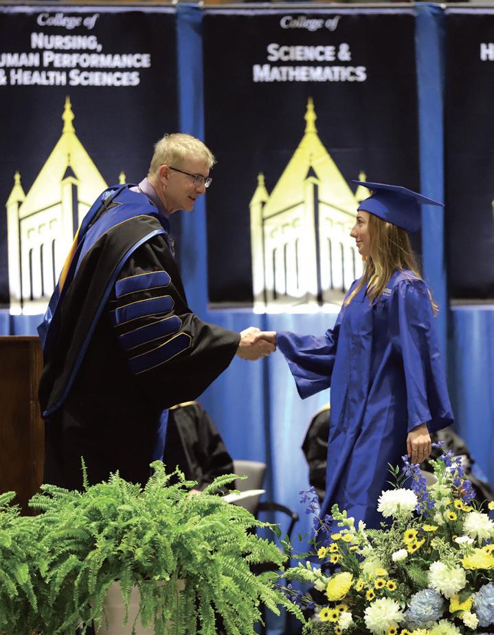 Receiving the Thayer Award for the fall Class of 2025 was nursing graduate Shae Baldwin. A member of the women’s soccer team, Baldwin became heavily immersed in numerous Lander organizations, including the Presidential Ambassadors, Student Alumni Association and Student Nurses Association. She has accepted a job at MUSC’s Shawn Jenkins Children’s Hospital, where she will work in the pediatric heart center.