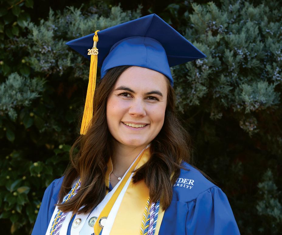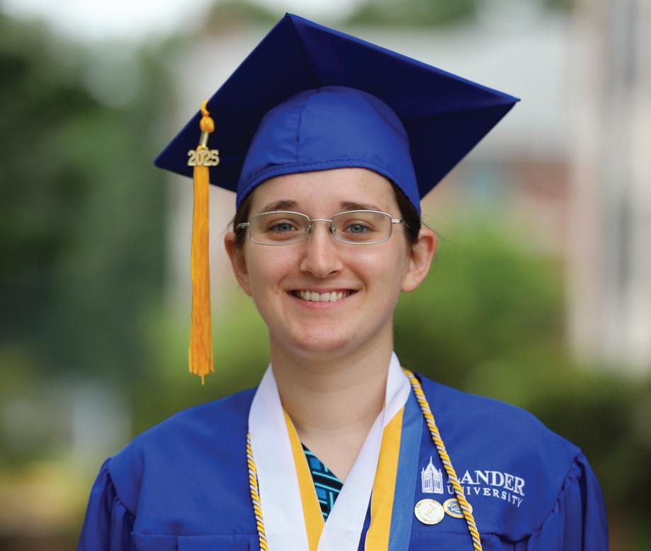 Rebekah Logan, a graduate of the spring Class of 2025, was honored with the Thayer Award, bestowed upon the graduating student with the highest grade point average (GPA). Logan earned a B.S. in Biology and a B.S. in Music, and now attends the Dental College of Georgia at Augusta University.