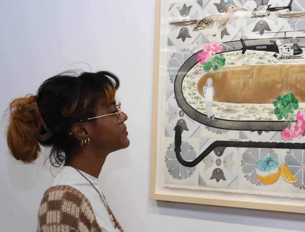 Graphic design major Brianna Sanaa Skeete was among the many students who attended the reception for Lander alumna Molly Ott’s recent exhibit at Lander University.
