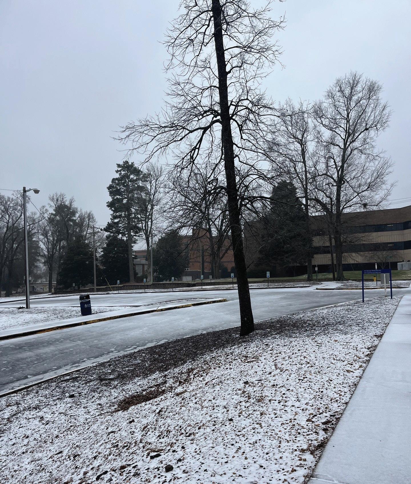 As preparations for the storm were underway, campus services began adjusting operations to reduce risk. Cones and warning signs were placed throughout campus to mark icy sections of sidewalks, stairwells, and building entrances. These visible precautions helped alert students to hazardous areas and demonstrated the University’s proactive approach to maintaining a safe campus environment.