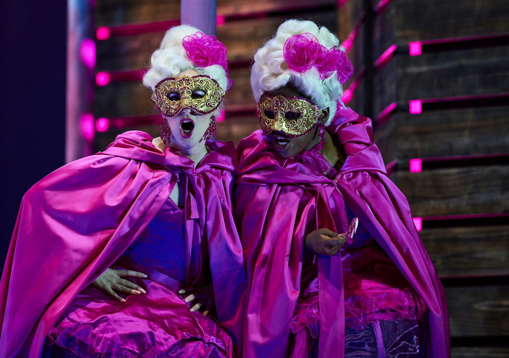 Schließlich stürmen auch Delacqua und die Senatoren den Palast – und das Chaos ist perfekt: Delacqua präsentiert ausgerechnet Ciboletta als seine Frau, während der Herzog nun zwei „falsche Barbaras“ gleichzeitig umschwärmt. Masken fallen, Missverständnisse türmen sich, Verwicklungen häufen sich – und am Ende bleibt nur eines sicher: diese Nacht am Canale Grande wird niemand so schnell vergessen!
