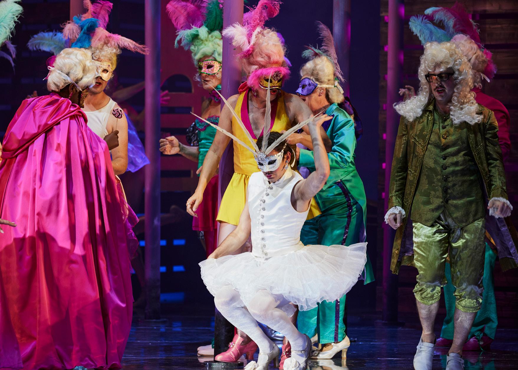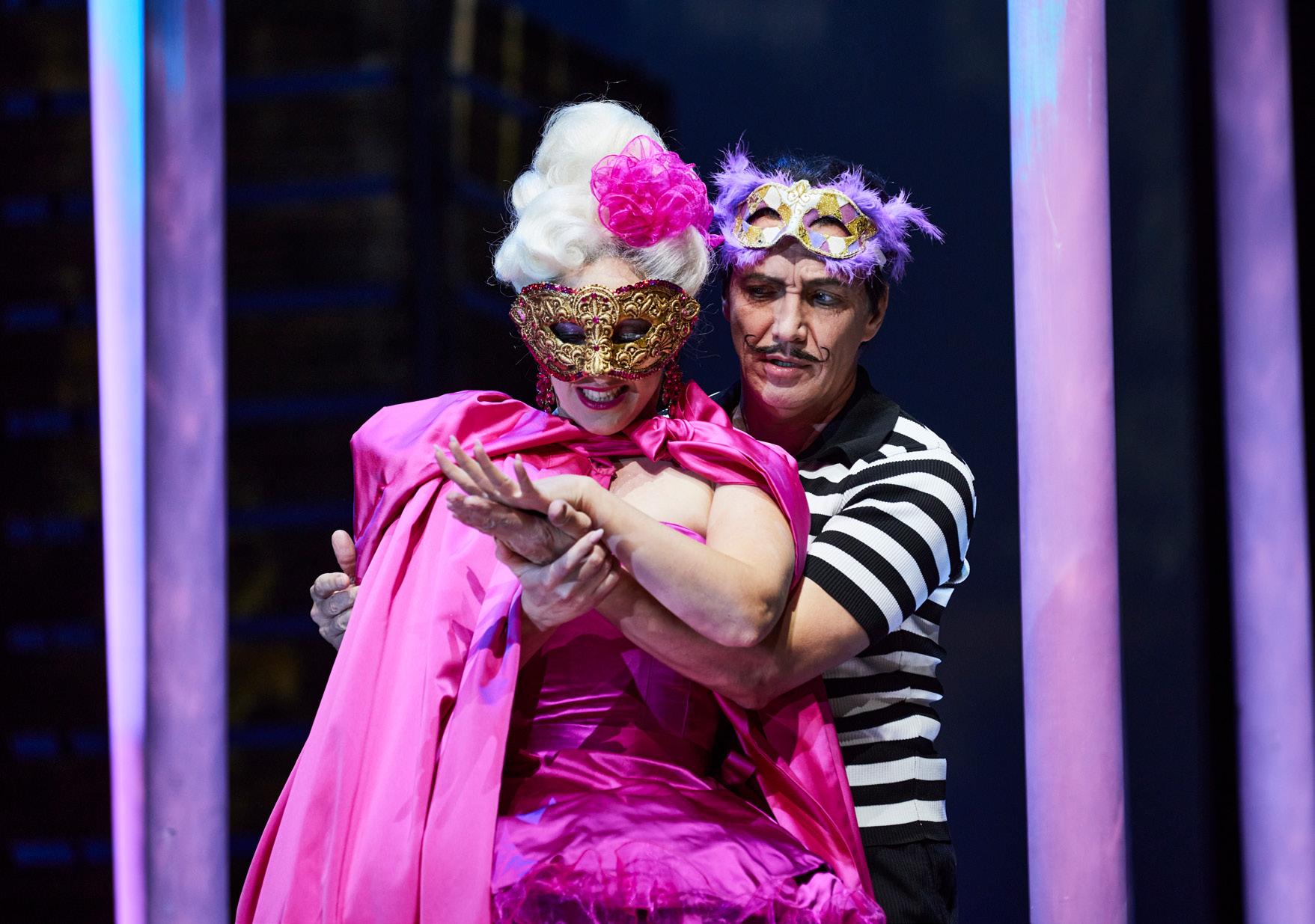 Eine Nacht in Venedig entfaltet eine doppelte Dimension: Sie ist zugleich komische Oper – beschwingt, verspielt, karnevalesk – und poetische Traumlandschaft, in der Erinnerung und Imagination unauflöslich ineinandergreifen. Das Fellineske prägt diese Ästhetik: eine Bildsprache, die Traum und Realität, Groteske und Schönheit, Heiterkeit und Melancholie untrennbar verschränkt. Die Inszenierung eröffnet damit einen Raum des Erinnerns, in dem Theaterbilder noch einmal aufscheinen, bevor sie im Dunkel des Vergessens verlöschen. Die Leichtigkeit des Spiels erweist sich dabei nicht als bloße Oberfläche, sondern als Voraussetzung für die Wahrnehmung von Verlust und Vergänglichkeit: Erst im tänzerischen Schwung der Walzer wird die Tiefe der Erinnerung spürbar – eine Erinnerung, die das Vergangene zugleich feiert und betrauert.