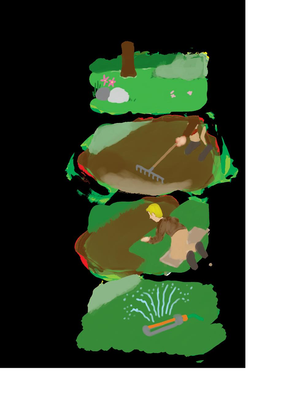 • Unebenheiten werden am besten mit einer ca. 2 cm dicken Schicht Rasenerde ausge -