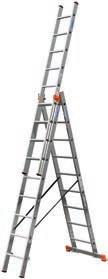 Dreiteilige Aluminium-Vielzweckleiter. Als Anlege-, Steh- und Schiebeleiter einsetzbar. TÜV-geprüft. Norm: EN131. Nutzlast: 150 kg.