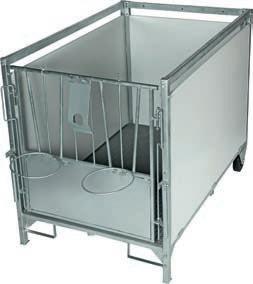 GFK-Bodenrost hält das Kalb trocken und warm. Feuerverzinkter Metallrahmen und PVC Seitenwände. Ausgestattet mit 2 Rädern, Tränkehalterung und 2 klappbaren Eimerhalterungen. 65209