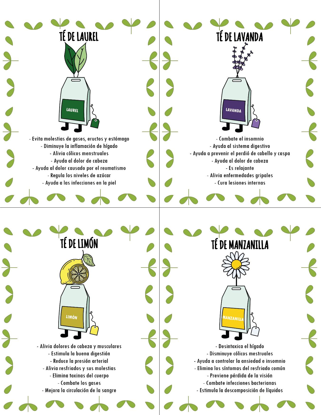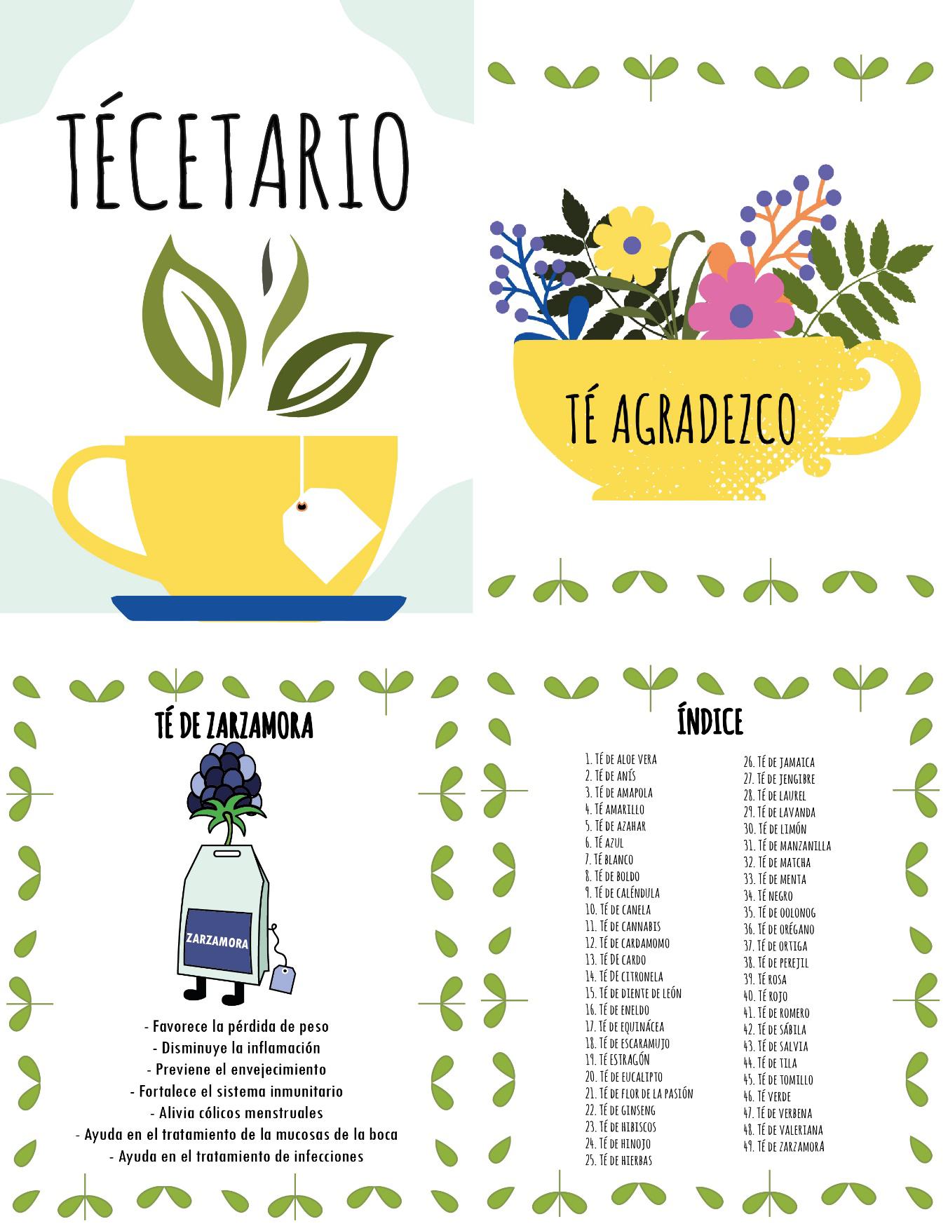 Material comercial que se presenta en tarjetas; funciona como recetario de tés, para saber que cura, en que beneficia y que puede prevenir cada uno de estos tés al cuerpo humano.
