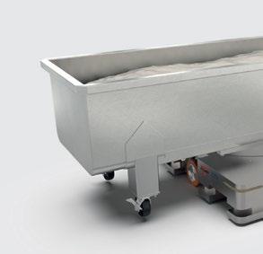 The WP Comjet consists of the WP Allround proofing system or the WP DBA proofing module and the WP Automatic Loader. The dough pieces are loaded fully automatically from the proofing/ feeding system trolley via unrollers or peel boards and transported to the proofing area. This means that up to 240 trays per hour can be proofed by just one person. The two lye curtains and the patented lye shower ensure even lye application even at high throughput speeds. The longer lye belt is ideal for applying lye to larger pieces. The deposit belt keeps the baking trays free of excess sprinkles. The adjustable heating system keeps the lye at a constant temperature and ensures shine and browning throughout the entire production process. The fill level sensor prevents dry running when the lye level is too low. In the Pro version, the lye tank is automatically refilled and mixed with the set lye concentration. The extendable 180-liter lye tank facilitates hygienic cleaning.