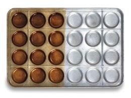 Molding component changeover is possible by simple plugand-play without using any tools. Standard format inserts are available in diameters of 30/40/50/60/70/80 mm. An example of use is the production of cookies with a 20-g portion size, a portion height of 15 mm and a portion diameter of 45 mm. Two operators and a VF 608 B with a MSE 441 are able to achieve a capacity of up to 2,500 pieces per hour, equivalent to 50 kg/hr.