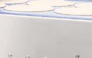 next to the bottoms for sandwich assembly plants. This slicer utilizes proprietary frozen slicing technology to allow slicing of rolls/ciabatta/English muffins at high speeds. The machine removes the top and places it next to the bottom to allow operators or a robotic set-up to easily apply meat/egg/cheese to the bun. Single lane operation allows for speeds from 60-120 frozen rolls per minute.