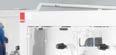 Domino’s Pizza has built an “Innovation Garage” covering about 3,000 m 2 at its head office in Ann Arbor, Michigan, USA; a creative center with room for around 150 employees. The two-story building has open work areas, meeting rooms and a “Pizza-Theater” where project teams can trial new technologies such as order kiosks and carryout trackers. It is