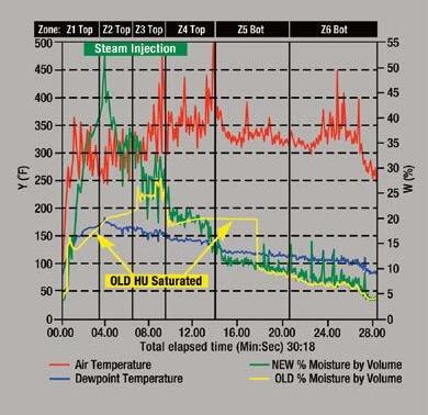 boiling water and steam. Belt speed adjustments are used to achieve the desired cooking time. Waterfall technology consumes less water, as the heated water of the bed is pulled through a filter and drawn up to the waterfalls.