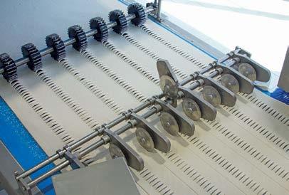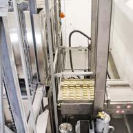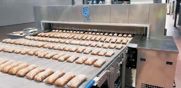 As this solution uses pans, it is also possible to add a buffer in the cooler, thus allowing packaging stops to be managed (e.g. due to changeovers) without stopping the rest of the line upstream. This functionality – which is not available