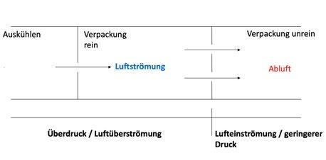 Die Luft strömt infolge der Druckdifferenz von reinen Bereichen in unreine Bereiche.