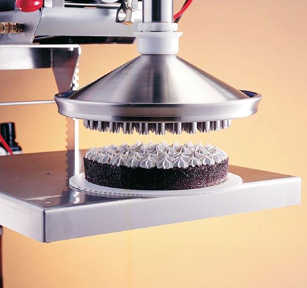 Einfetten von Backformen und Backblechen oder zur Automatisierung der Kuchen- oder Tortenproduktion. Übrigens, eine Kuchen- oder Tortenlinie verkauft man nicht, eine Kuchenlinie passiert“. Das muss er erklären. „Wenn die Nachfrage steigt und Betriebe plötzlich immer an mehr Torten, als Beispiel, produzieren müssen, dann müssen sie die Abläufe anpassen und automatisieren. Mit unseren Lösungen können wir z. B. die Arbeit beim Einstreichen der Massen oder beim Dekorieren der Torten erleichtern und die Herstellung insgesamt verschlanken. Das ist gut für die Mitarbeiter und erhöht die Produktivität. Es geht hier ums Liniendenken mit pneumatischen Unifiller Portionier- und Dosiersystemen. Robotik mussten wir in unseren Konzepten bislang nicht einsetzen, sind aber natürlich gerüstet und vorbereitet, wenn man sie nutzen muss.“