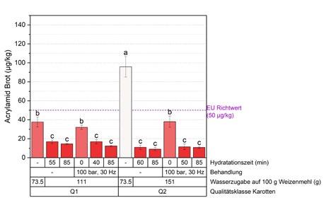 eine kurze forcierte Hydratation die Acrylamidwerte um mehr als 40 % senken konnte, während eine verlängerte Einweichzeit die Werte sogar um bis zu 90 % reduzierte. Beide Strategien erwiesen sich als wirksam, um die Acrylamidwerte unterhalb der EU-Richtwerte zu halten, und bieten somit wertvolle Ansätze für die praxisnahe Optimierung von Rezepturen mit Spezialzutaten. +++